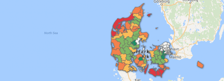 Værst ser det ud i Nordvestjylland; især Thisted, Lemvig, Morsø, Vesthimmerland og Lolland-Falster Kommuner er hårdt ramte.