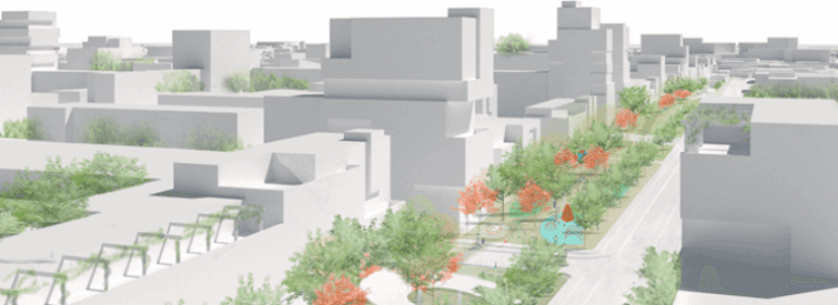 Kvartererne bindes sammen af rekreative boulevarder, langstrakte parker på nedlagte veje og grønne områder til idræt og leg. Den nyeste by- og transportteknologi kommer også til at spille en understøttende rolle i den fysiske og digitale infrastruktur ved at gøre færdslen i området både let tilgængelig, sikker og komfortabel.