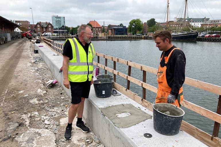 - Sammen med det nye pumpesluse-anlæg ved Marina Syd skal den nye højvandssikring forhindre, at vand fra fjorden løber ind i midtbyen via Kolding Å. Løsningen er dimensioneret, så den kan klare en vandstand, der svarer til en 100-årshændelse om 40 år, siger Lars Guldager.