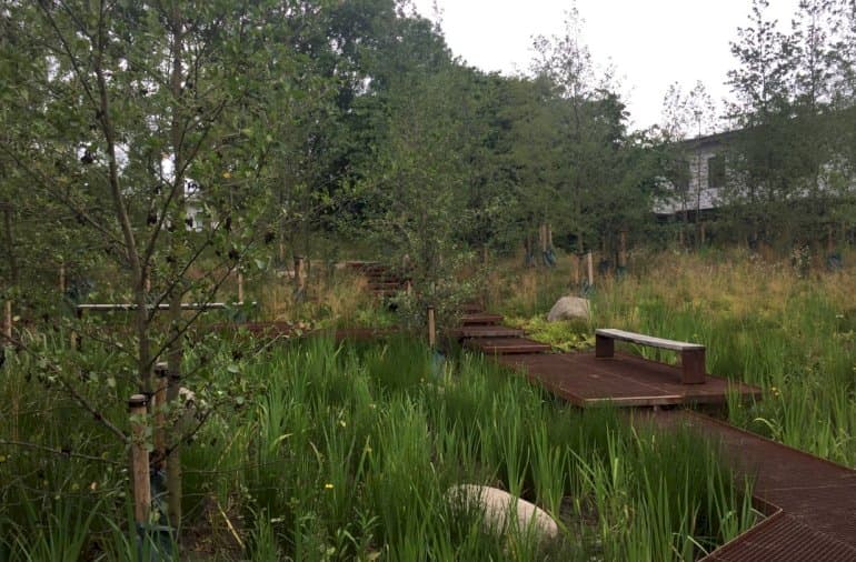 I den vestlige del af parken er der nu plantet nye elletræer, buske og stauder på et areal, som svarer til ca. en fodboldbane. Det nye område skal ikke bare give de besøgende en bedre naturoplevelse og booste biodiversiteten, men også sikre, at nærområdet fremover ikke står under vand, når skybrud rammer.