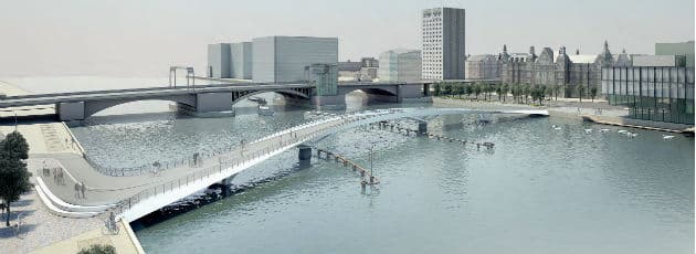 KØBENHAVN: En dommerkomité har valgt udformingen af en oplukkelig cykel- og gangbro over Københavns Havn lige nord for Langebro, som Realdania giver som en gave. Broprojektet gennemføres i et samarbejde mellem Realdania Byg og Københavns Kommune og ventes at stå færdig i 2018. Københavns Kommune har haft en ny cykelforbindelse ved Langebro i kommuneplanen siden 2001.